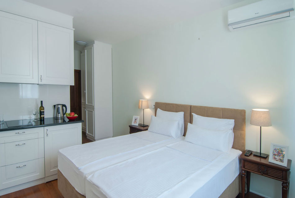 Svi apartmani su opremnjeni luksuznim nameštajem, kuhinjom sa posuđem, LED TV-om sa kablovskom televizijom, klikma uređajem... » Opširnije «